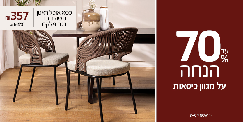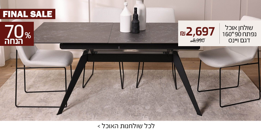 סט שולחן אוכל נפתח+4 כסאות דגם דאסטימחיר מבצע 3,290.00 ₪ מחיר מחירון 6,590.00 ₪ -