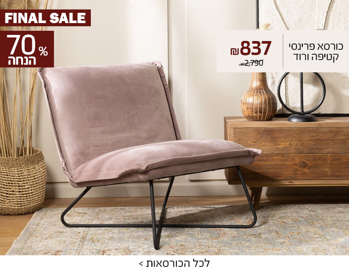 כורסא בד בגוון צהוב דגם גרובמחיר מבצע 649.00 ₪ מחיר מחירון 1,390.00 ₪ -