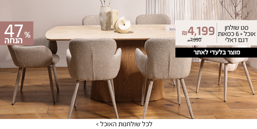 סט שולחן אוכל נפתח+4 כסאות דגם דאסטימחיר מבצע 3,199.00 ₪ מחיר מחירון 6,590.00 ₪ -