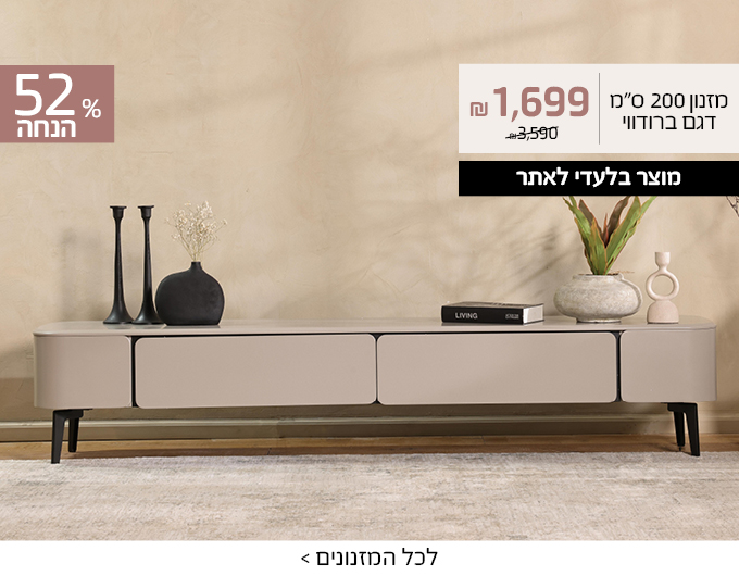 מזנון טלוויזיה 220 ס"מ בגוון לבן מבריק דגם אופלמחיר מבצע 2,372.15 ₪ מחיר מחירון 2,799.00 ₪ -